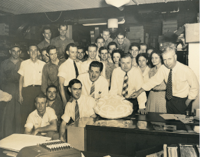 The early days at the Standard Parts Company, the Memphis NAPA warehouse. Malcolm Fraser is at far right. Seated to the left of the cake is Gene White, who shipped SFA books for many years. |