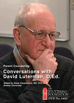 Conversations with David Luterman, D.Ed. — In this insightful, two-part program, sit in the room with master clinician, David Luterman, as he counsels parents of children who stutter. Then, eavesdrop on his discussion of the session with practicing clinicians. This video is divided into two parts: Group Therapy with Parents (1 hour) and Therapists' Review of Parent Session (1 hour). Your students can witness this interaction which is seldom seen in action.