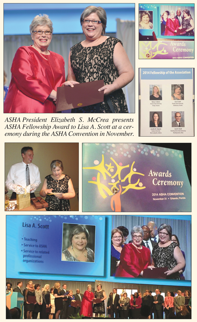 “Being awarded ASHA Fellow means a great deal to me, as it is recognition by my colleagues that my professional contributions have been meaningful to others,” said Scott. “I decided when I was 18 that I wanted to be a speech-language pathologist and have never veered from that decision; I love what I do. I am so grateful for the opportunities I’ve been given to contribute to this field.”