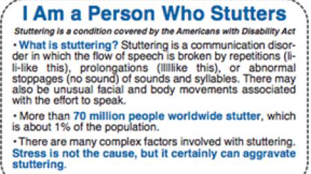 The Stuttering Foundation created a free identification card available to all those who stutter. It is designed to help them identify themselves in a nonverbal way as someone who may have trouble speaking.